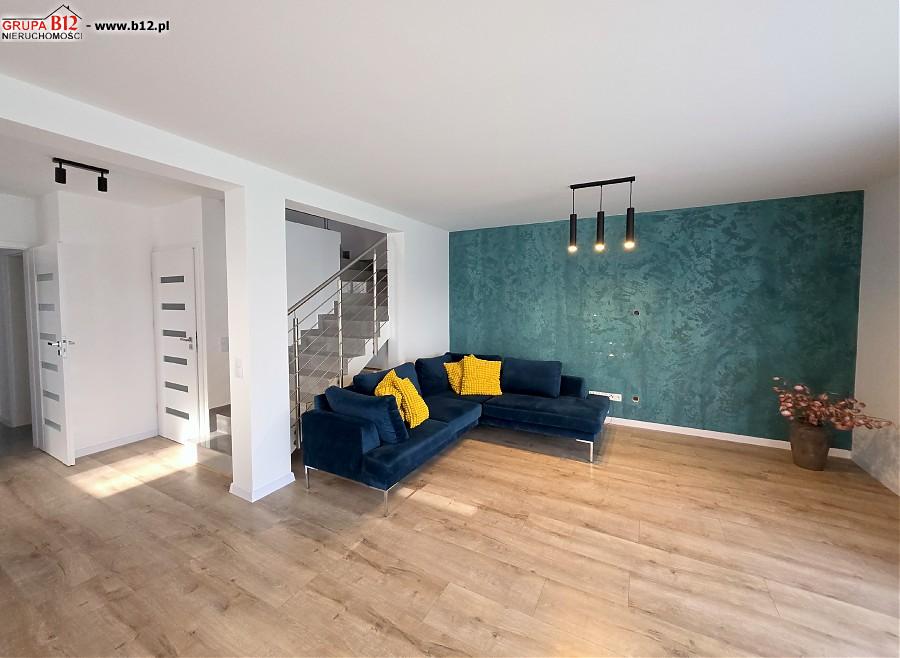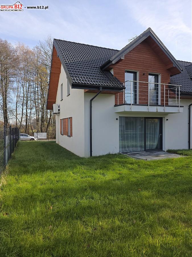 Dom jednorodzinny w zabudowie bliźniaczej o powierzchni 135m2 położony jest na około 4 arowej ogrodzonej działce. Mieści się w cichym i spokojnym miejscu pośród zieleni, w okolicy znajdują się jedynie domy jednorodzinne o niskiej zabudowie, w większości nowe.