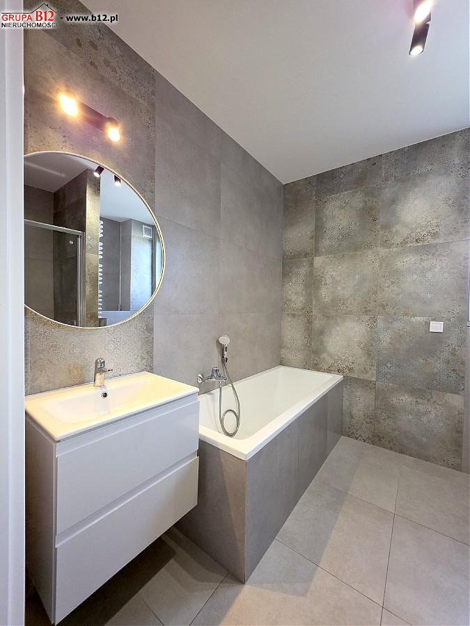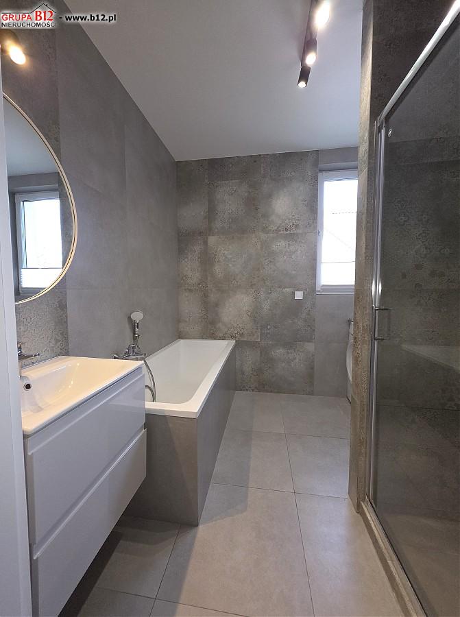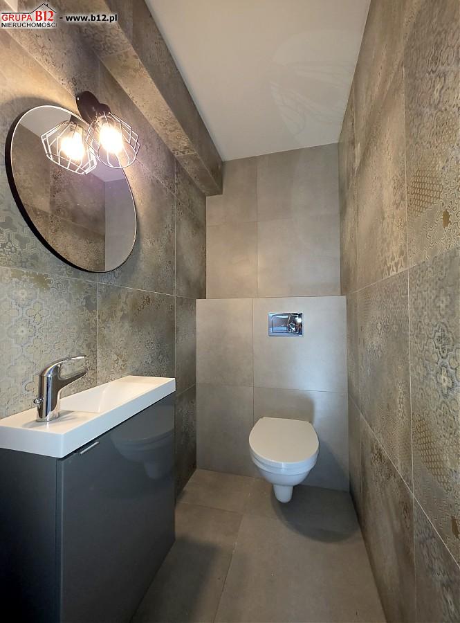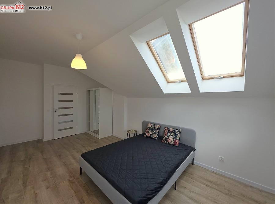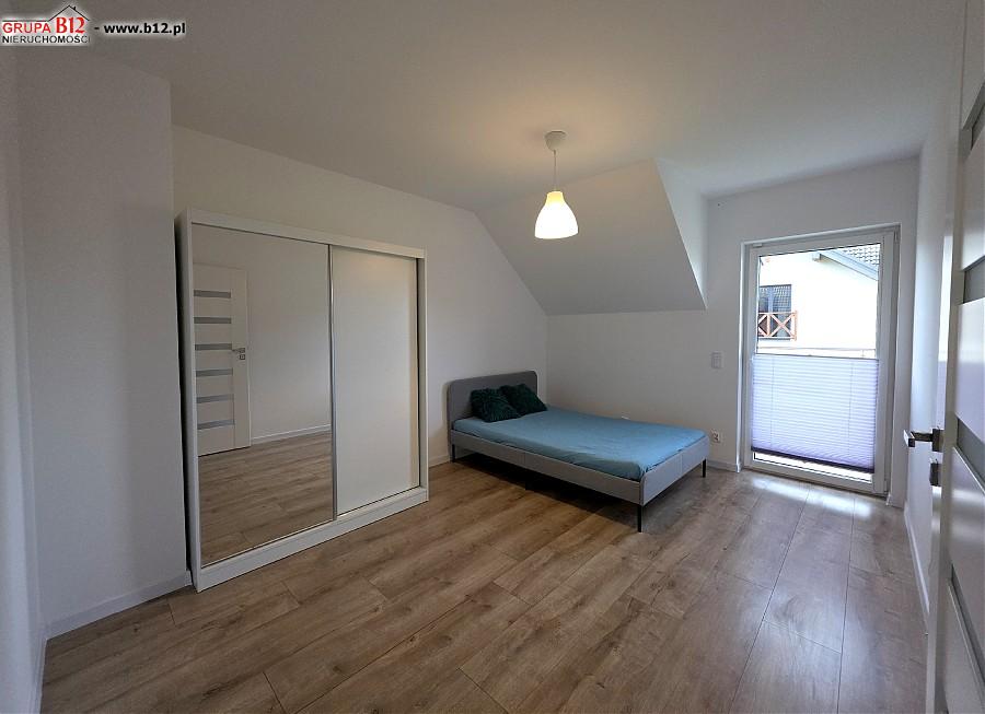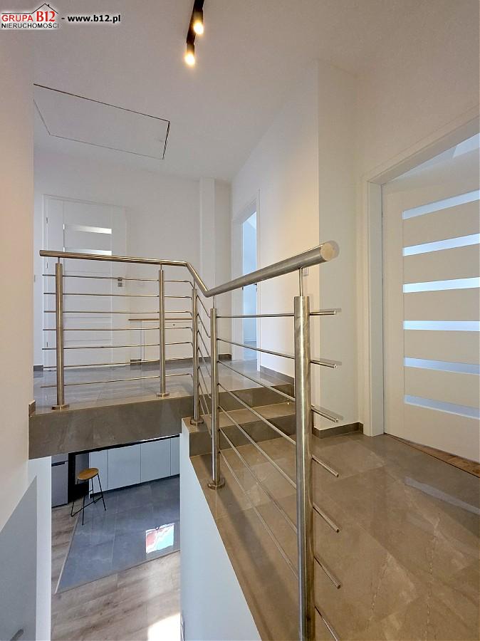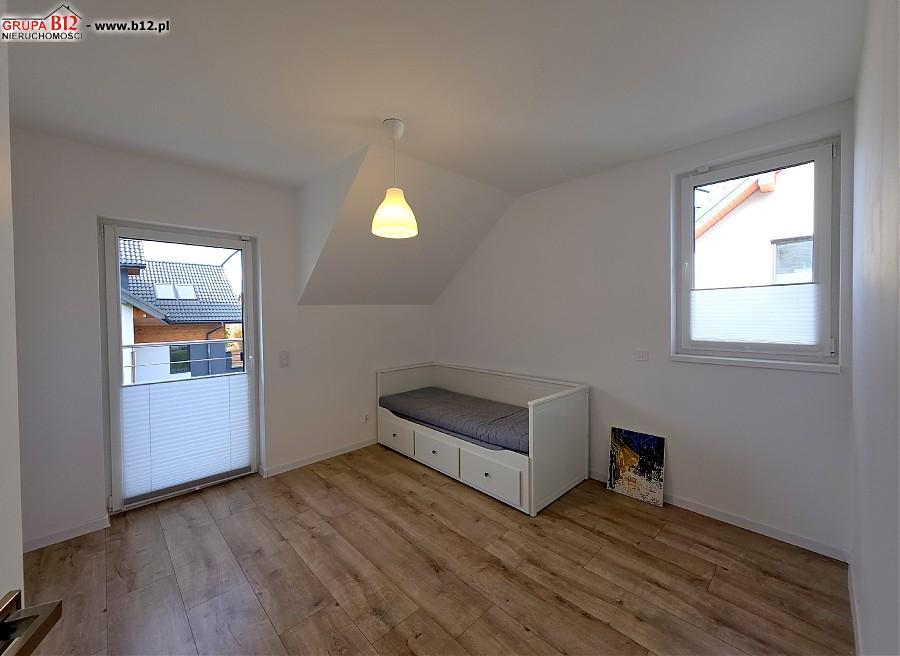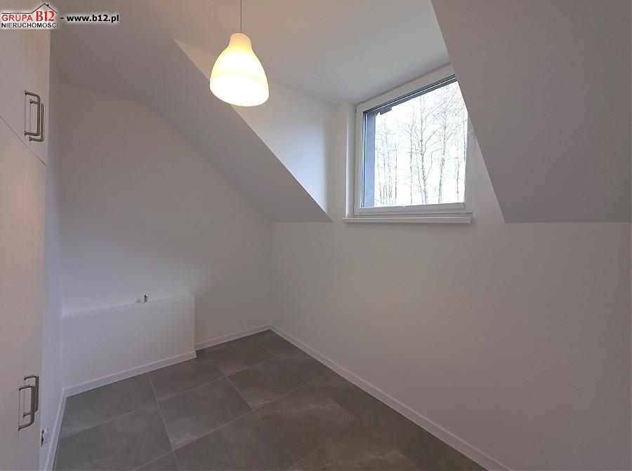 Na piętrze znajduje się : korytarz klatki schodowej z którego wejdziemy do przestronnej łazienki z wanną oraz prysznicem i pralką, 3 odrębnych sypialni ( z dwóch pokoi jest wyjście na wspólny balkon), gabinetu wyłożonego gresem polerowanym( pomieszczenie z którego można zrobić garderobę bądź małe biuro)