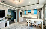 Mieszkanie składa się z trzech poziomów. Na parterze znajduje się reprezentacyjny salon z aneksem kuchennym, który stwarza doskonałe warunki do wspólnego spędzania cza
