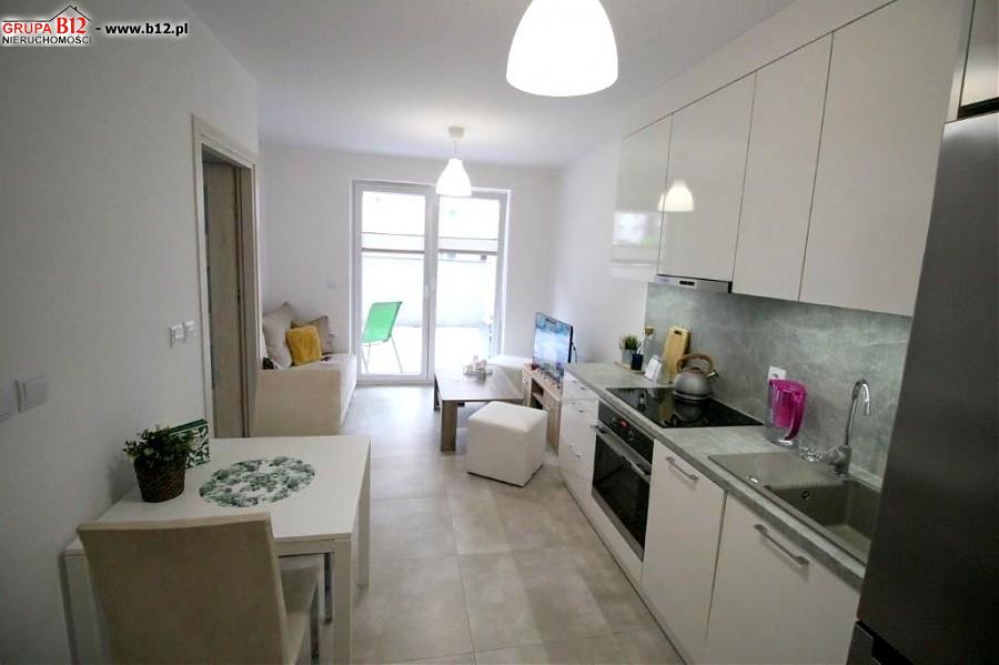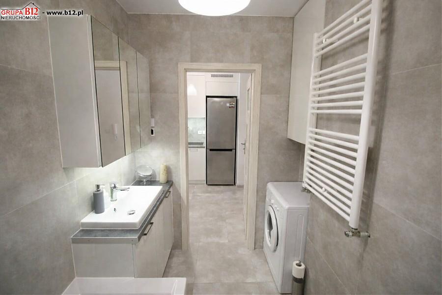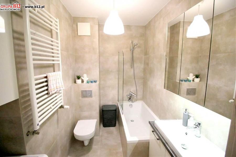 Mieszkanie wykończone w bardzo dobrym standardzie, z meblami na wymiar. Kuchnia wyposażona w pełne AGD (lodówka, zmywarka, piekarnik, płyta, okap), w łazience pralka. W oknach żaluzje plisowane.