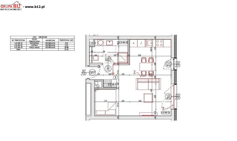 • Układ: salon z aneksem kuchennym + wnęka sypialniana, łazienka, przedpokój
